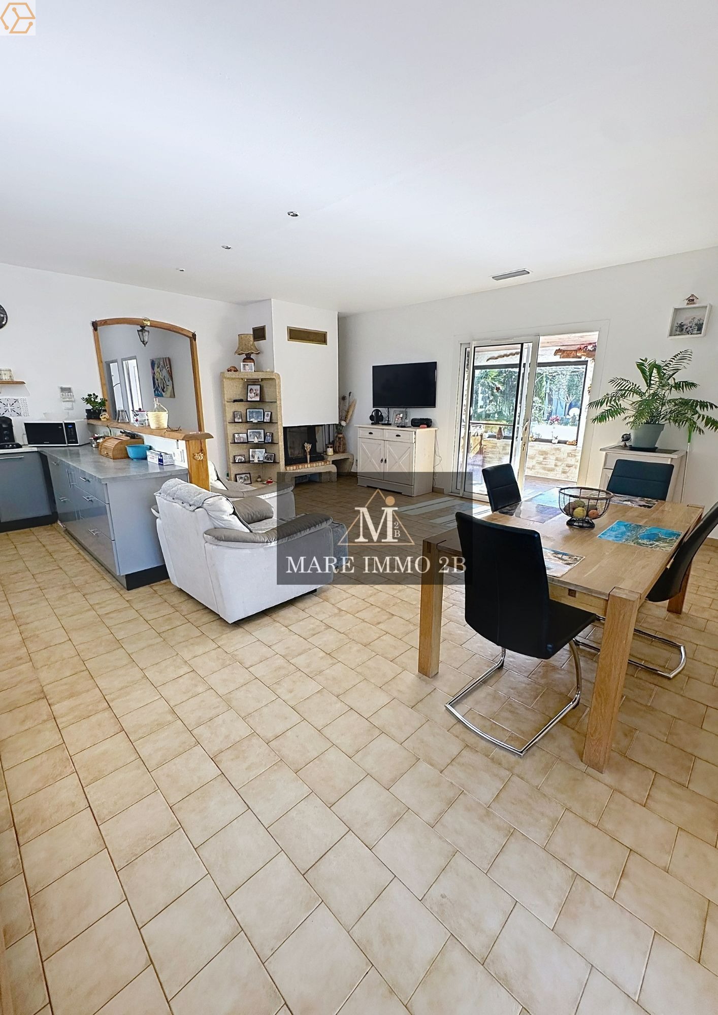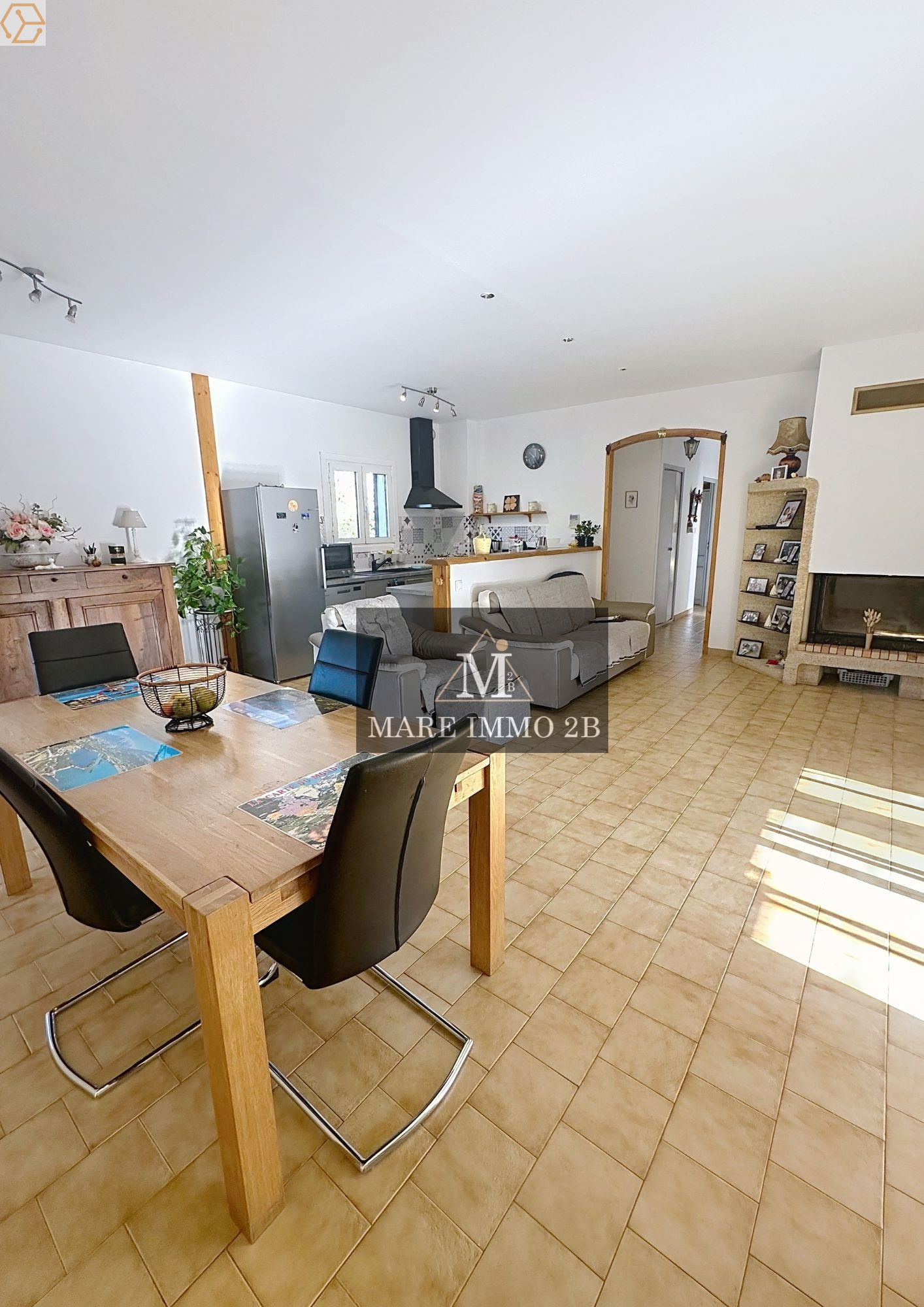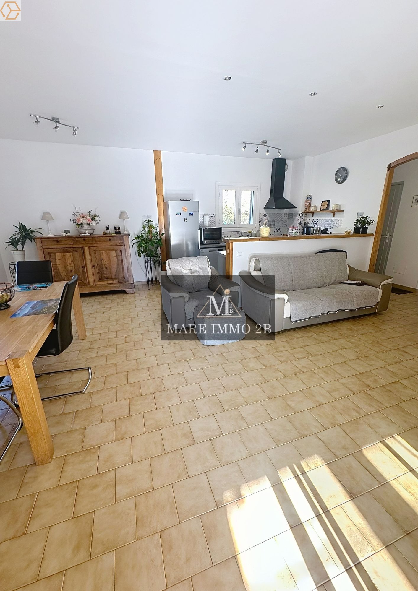 • entrée, séjour lumineux, cuisine ouverte avec salle à manger,