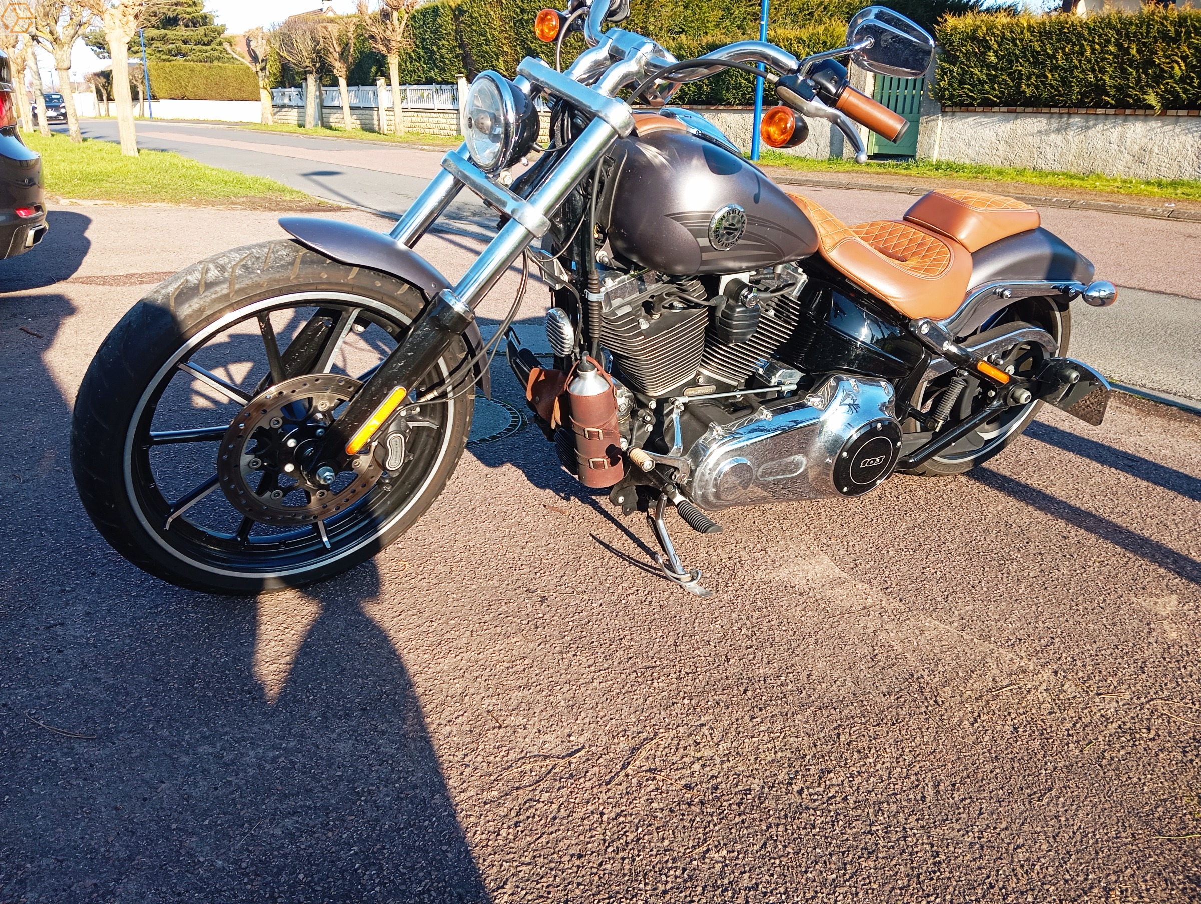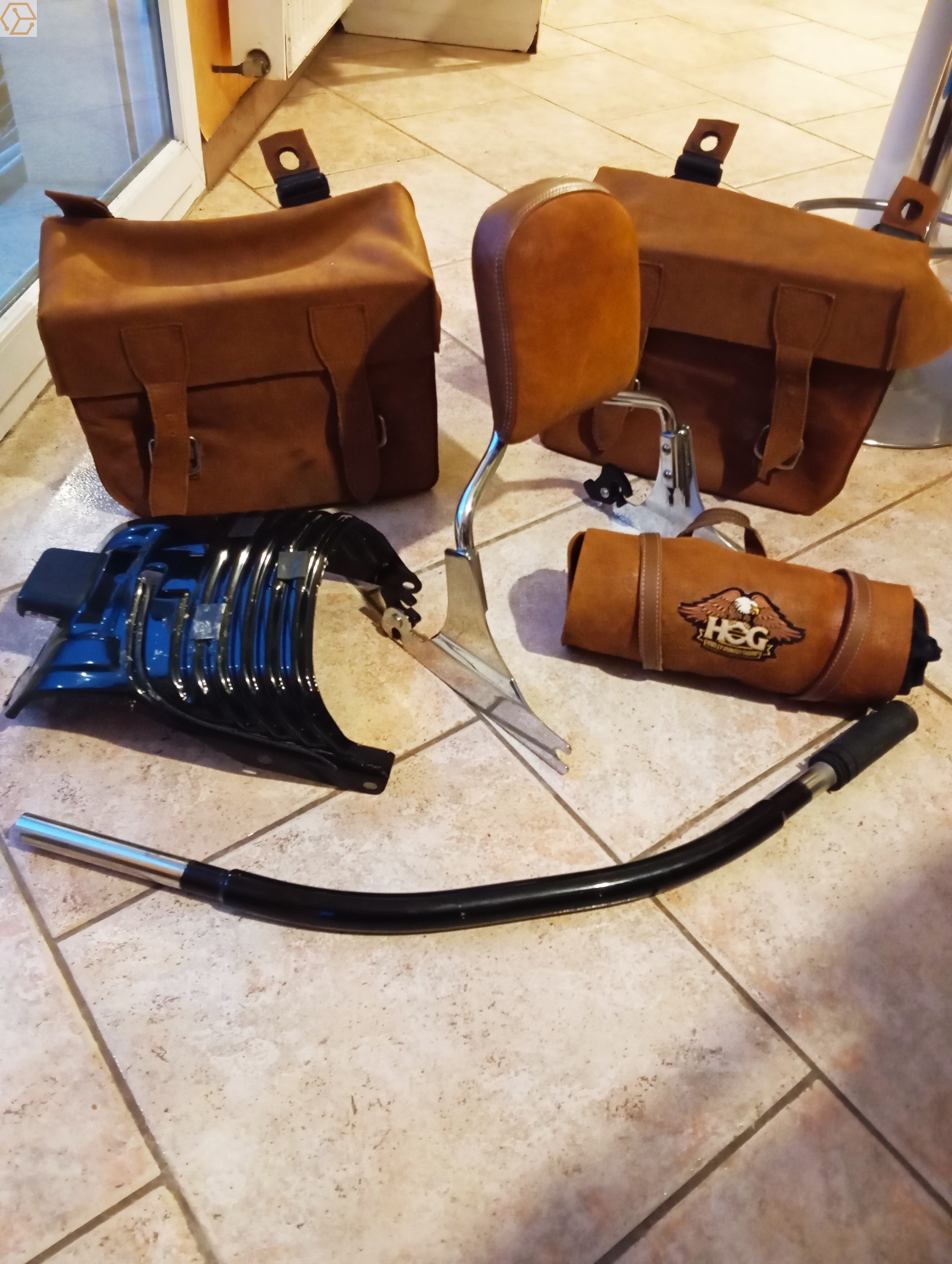 Selle, pouf, sissy, bande de réservoir, poignées, sacoches couleur perso