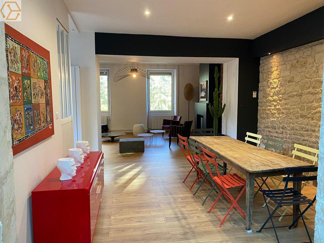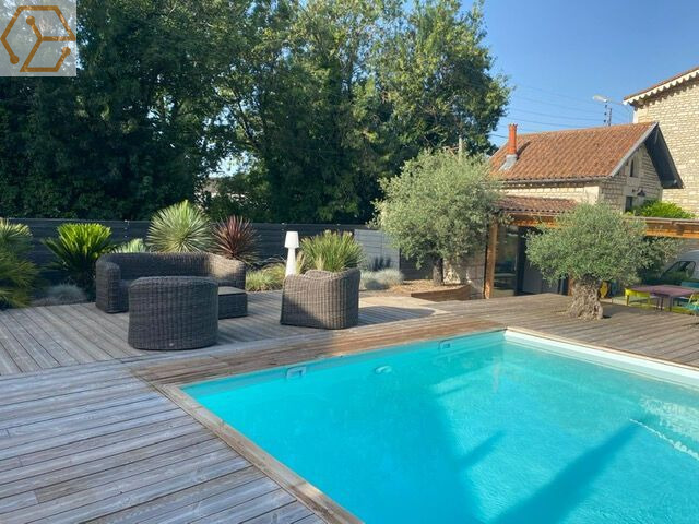 Proche de l'hyper centre de Niort, maison de caractère en bords de Sèvres, dans un environnement verdoyant et calme, sans mitoyenneté et de vis à vis comprenant : Une entrée, un grand salon séjour avec cheminée, cuisine/véranda aménagée et équipée, WC. Au 1er étage, deux chambres avec chacune leur salle d'eau ou salle de bains avec WC, dressing. Au 2ème étage, deux autres chambres avec également chacune leur salle d'eau et WC. S'ajoute à la maison une dépendance avec une grande cuisine d'été équipée avec terrasse de 50 m2 couverte, un bureau indépendant, une cave et un abri de jardin. La maison est entourée d'un parc arboré de 1650m2 comprenant une piscine chauffée avec terrasse.